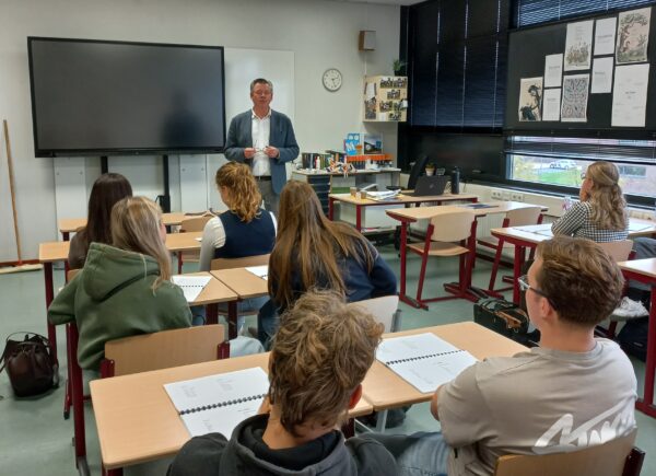 Vandaag (23 okt. 2025) gaf ik op het Markland College in Zevenbergen gastlessen in 6VWO over vrolijke rederijkerspoëzie uit de 15e en 16e eeuw. De lessen eindigden in hilariteit, omdat de leerlingen de eerste strofe van het gedicht over de anus van Anna Bijns rijmend moesten vertalen. (Op de foto zijn ze nog niet zover.)